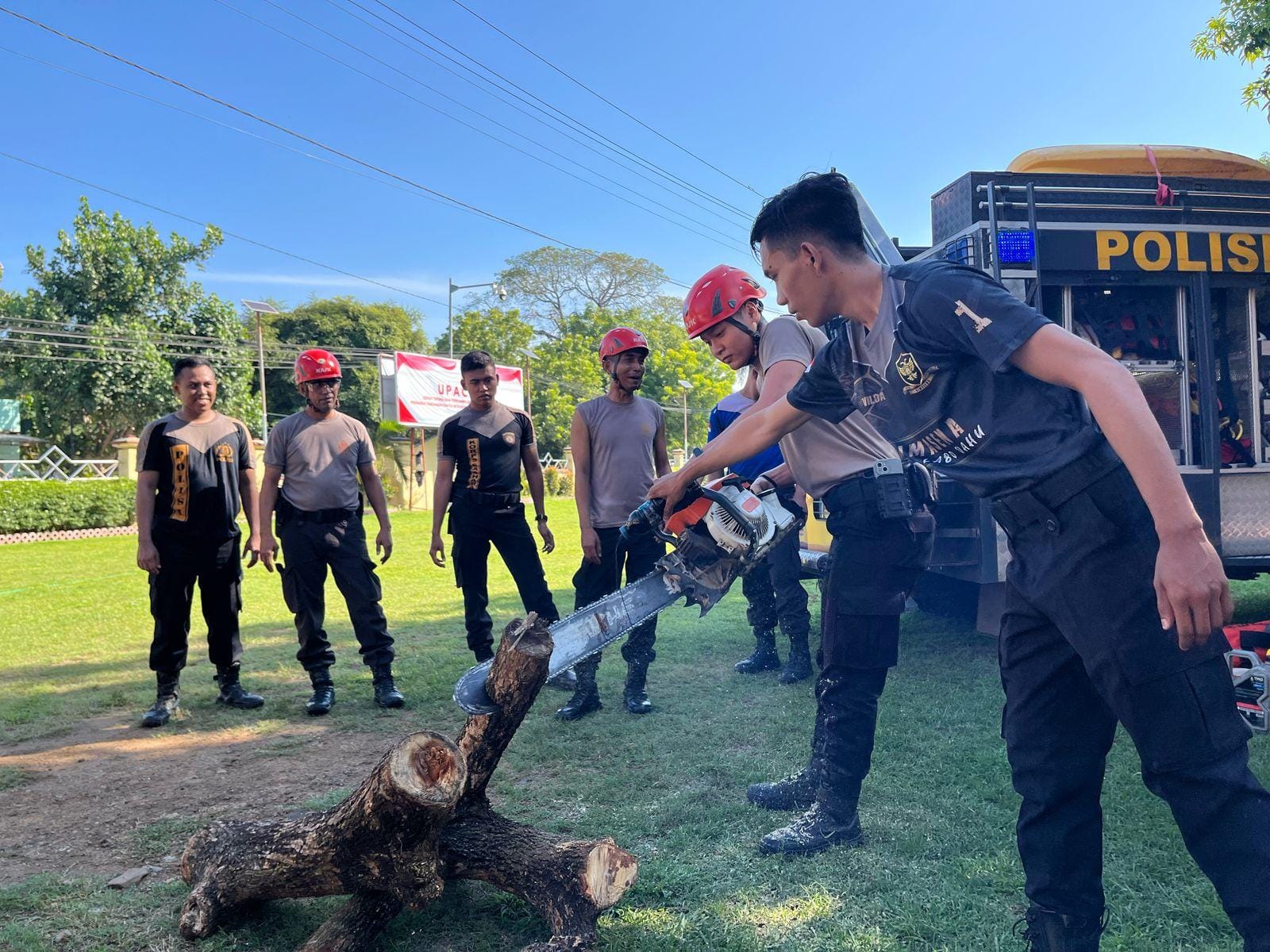 Kapolres Bima AKBP Eko Sutomo S.I.K., M.I.K., melalui Kasi Humas AKP Adib Widayaka menjelaskan bahwa latihan ini dilakukan untuk melatih kesiapan anggota secara operasional dalam menghadapi bencana alam, baik skill maupun peralatan yang akan digunakan.