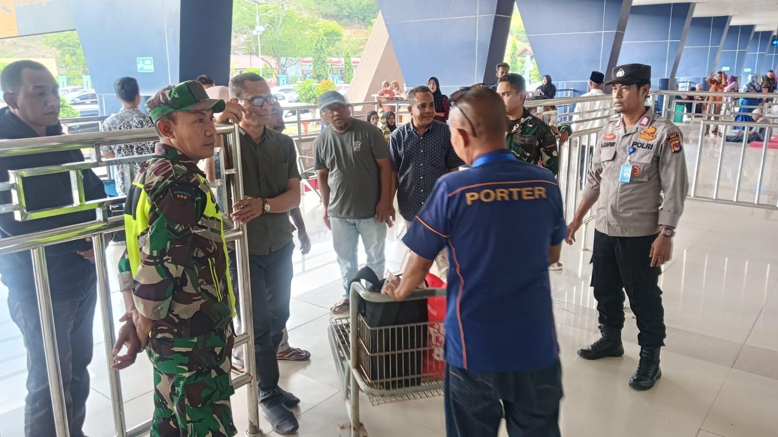 Polsek KP3 Bandara Muhammad Salahuddin Bima Polres Bima Polda NTB melaksanakan patroli dan pengawasan di kawasan Pelabuhan Udara.