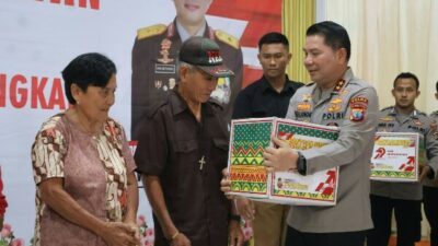 Penyerahan paket bansos ini dipimpin langsung Kapolda Sulawesi Utara Irjen Pol Roycke Harry Langie bersama Ketua Bhayangkari Sulut Ny. Joan Roycke Langie didampingi PJU Polda Sulut dan Pengurus Bhayangkari Sulut serta Forkopimda Minsel, di Balai Desa Pakuweru, Kamis (26/6/2025).
