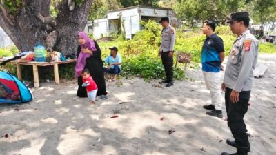 Selain berpatroli, personel kepolisian juga aktif memberikan himbauan kepada para pengunjung pantai. Pesan yang disampaikan sangat sederhana namun krusial: tetap waspada dan berhati-hati.