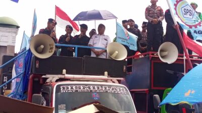 Lantunan sholawat menggema dari tengah massa dan menjadi penyejuk suasana. Para buruh yang hadir tak hanya menyuarakan tuntutan, tetapi juga menegaskan komitmen menjaga ketertiban dan persaudaraan. Momen ini pun disambut hangat oleh jajaran kepolisian yang ikut berbaur dalam doa.