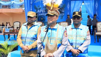 Jayapura — Wakapolri Komjen Pol Prof. Dr. Dedi Prasetyo menyampaikan apresiasi setinggi-tingginya kepada Pemerintah Provinsi Papua, Polda Papua, serta seluruh komunitas yang hadir dalam Apel Mitra Kamtibmas Presisi 2025. Lebih dari 1.000 peserta dari berbagai elemen masyarakat turut serta, menunjukkan kuatnya kolaborasi menjaga keamanan dan ketertiban di tanah Papua, Selasa (9/12).
