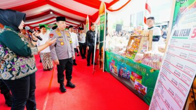 Surabaya. Kapolri Jenderal Polisi Drs. Listyo Sigit Prabowo menghadri Bazar Ramadan Polri Presisi dan Baksos Ramadan Bhayangkari 2025 di