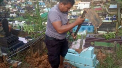 Jakarta. Bripka Joko Hadi Aprianto sehari-hari bertugas di Polsek Samarinda Ulu, Polresta Samarinda, ternyata ‘nyambi’ menjadi penggali kubur. Bripka