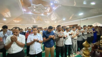 Mataram — Suasana haru menyelimuti jajaran Polda NTB saat melaksanakan salat gaib dan doa bersama untuk tiga personel Polri yang