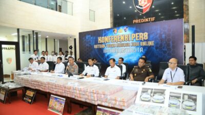 Jakarta – Dalam konferensi pers di Mabes Polri, Direktur Tindak Pidana Siber (Dirtipidsiber) Bareskrim Polri, Brigjen Himawan Bayu Aji,